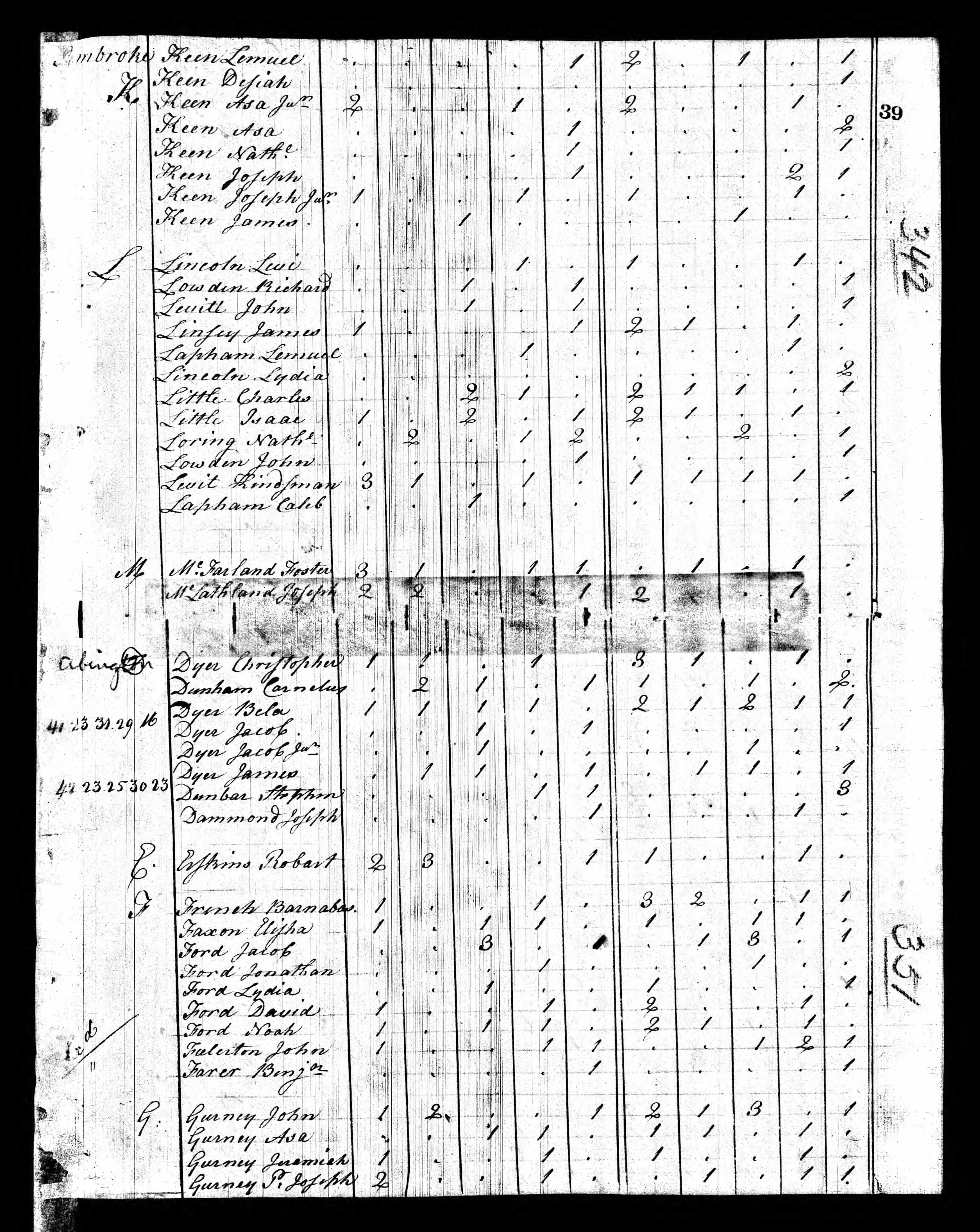 Census, 1800, US MA Plymouth County, Pembrook, Page 39, Keen, Lemuel